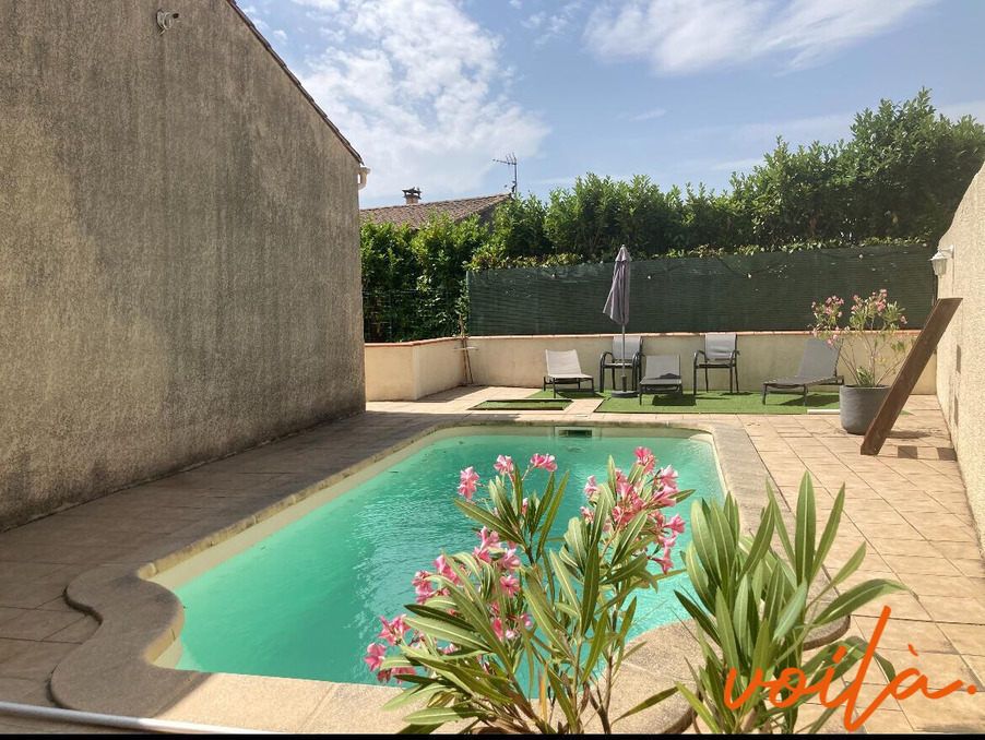 RÉF : IDEALE : 5 MN OUEST CARCASSONNE - villa 100m2 PP - 3 ch - véranda - garage 33m2 - jardin - piscine