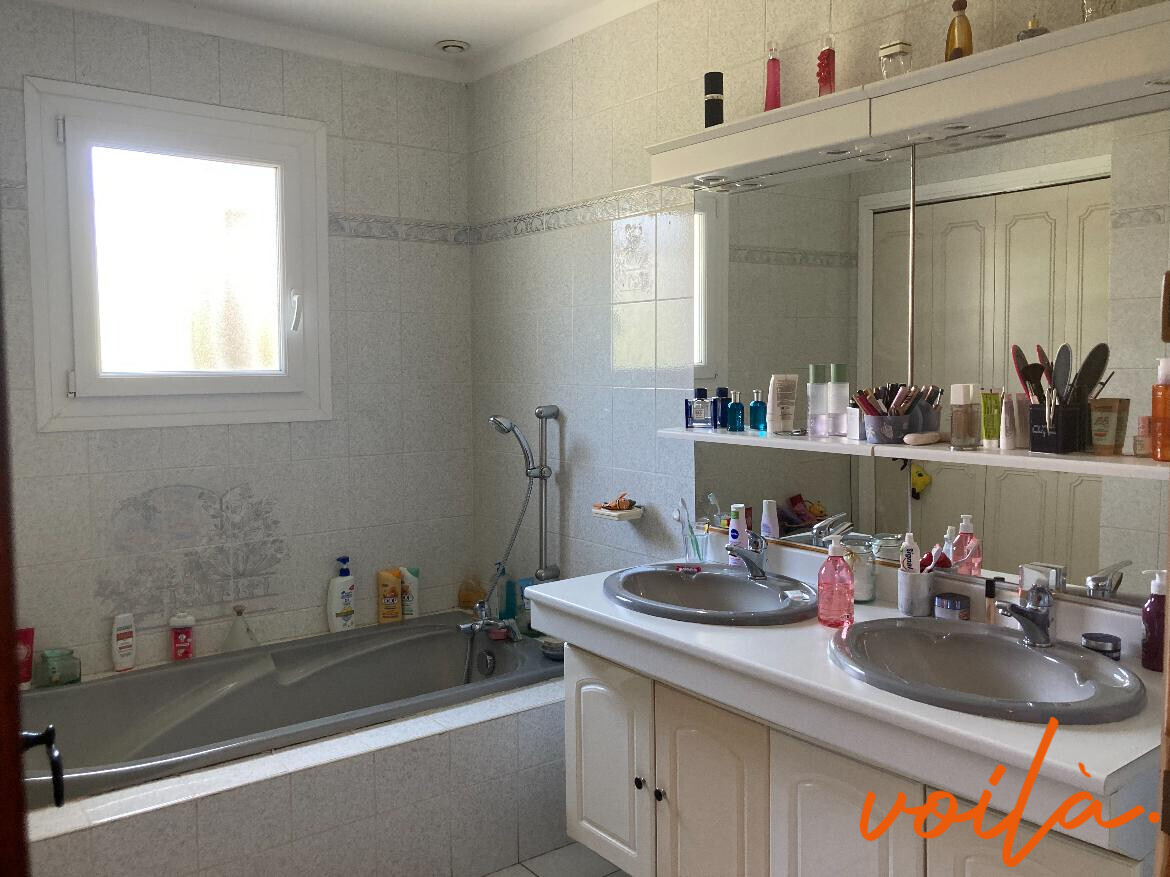 La villa se trouve dans une impasse et se compose d'un hall d'entrée, d'un séjour avec accès véranda, d'une cuisine équipée ouverte (four, table cuisson gaz, frigo, hotte), d'un espace nuit comprenant 3 chambres dont deux avec placards, un wc séparé, une salle-de-bains avec placards.