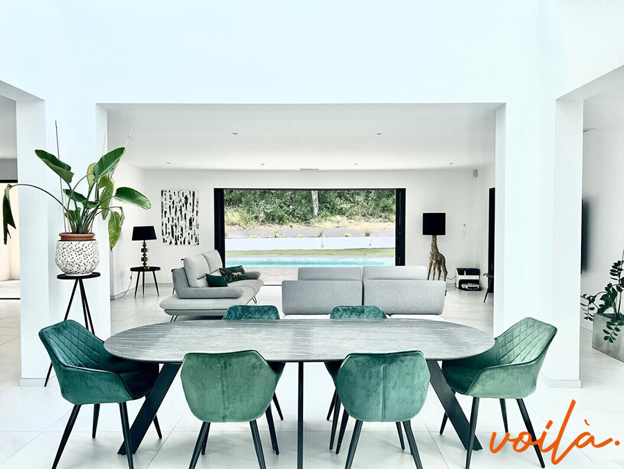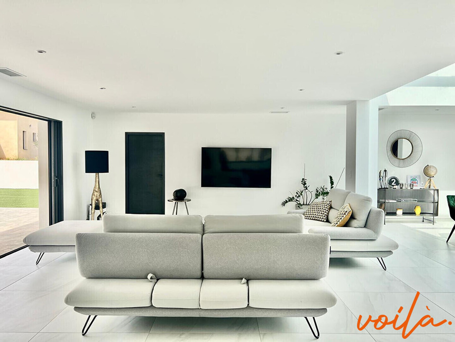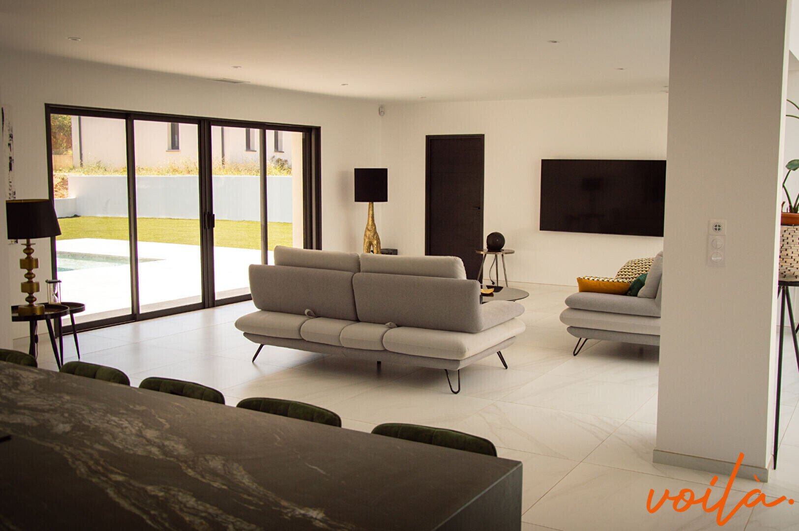 Réf :' PALMSPRINGS' Votre agence immobilière Voilà vous propose une villa à l'architecture contemporaine. Située aux portes de Carcassonne, à quelques pas du Lac de la Cavayère et des sentiers de randonnées , elle développe une surface de 205 m2 au total, le tout au coeur d'un terrain de 1015m2. Grâce à sa conception bien pensée, toutes les pièces de vie sont tournées vers l'extérieur.