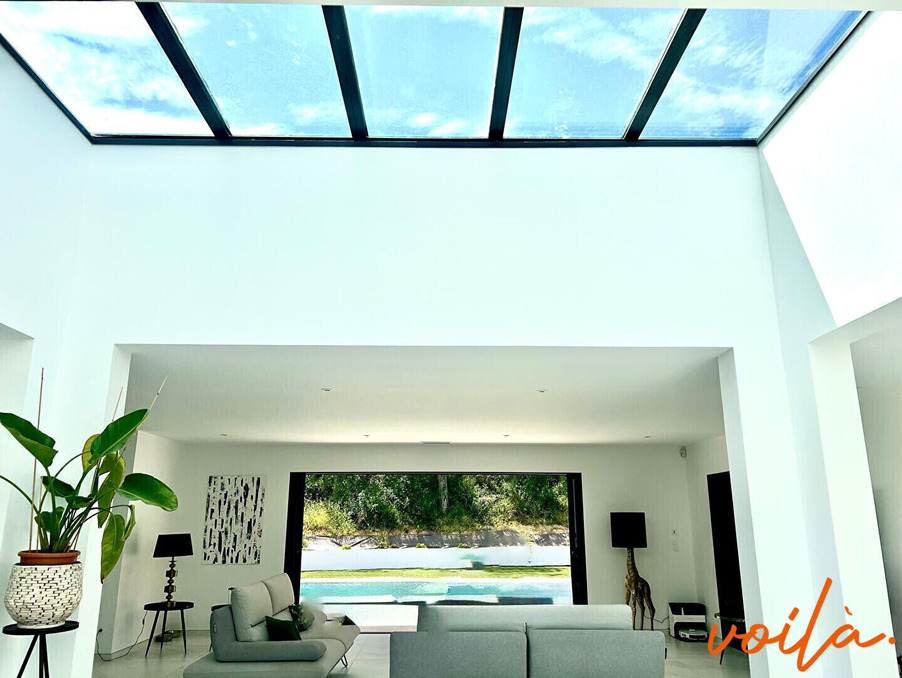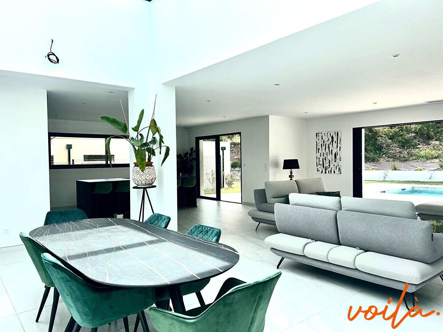 Cette maison neuve offre de beaux volumes composés d'un majestueux hall d'entrée totalement vitré, d'un séjour, d'une cuisine équipée ouverte , d'une salle-à-manger , sans oublier le patio intérieur qui entièrement vitré et permettant d'accéder à la grande terrasse ; rend un effet dedans / dehors exceptionnel.