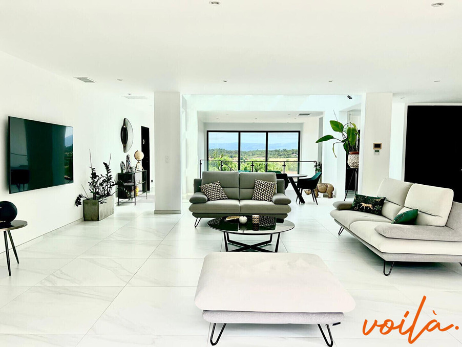 VUE EXCEPTIONNELLE A COUPER LE SOUFFLE surplombant le village, cette villa offre un cadre de vie agréable dans un quartier recherché. Produit UNIQUE!
